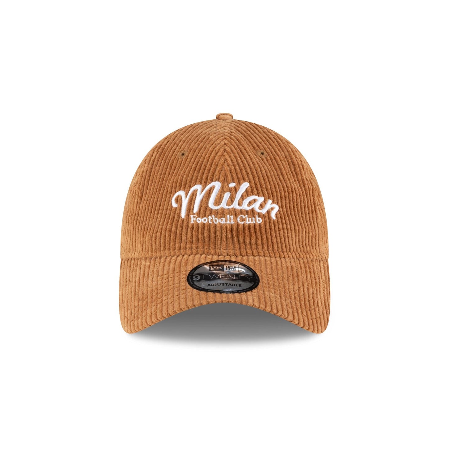 The AC Milan Chunky Corduroy 9TWENTY Adjustable Cap features an embroidered AC Milan script wordmark at the front panels with a team tag on an adjustable D-Ring closure at the rear.