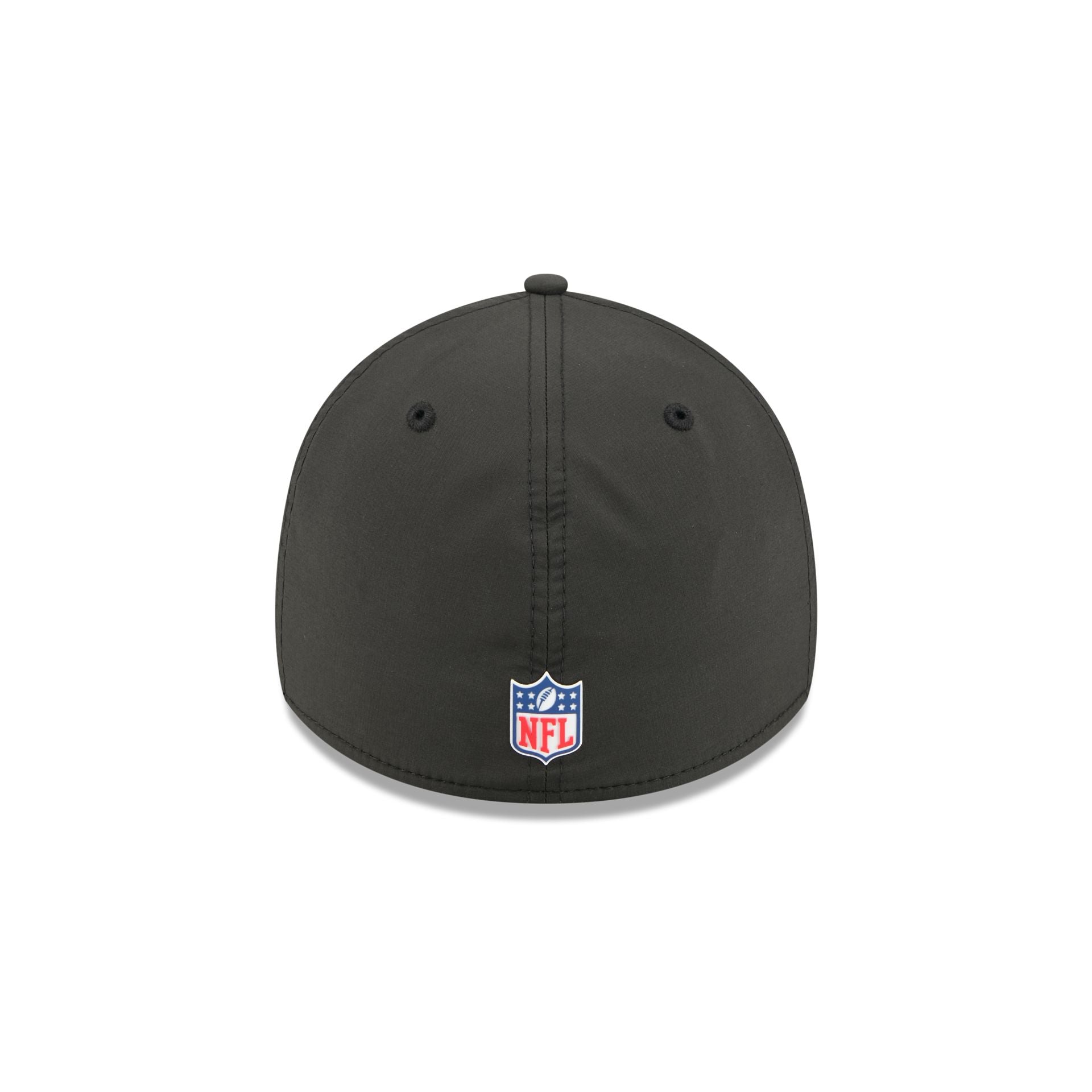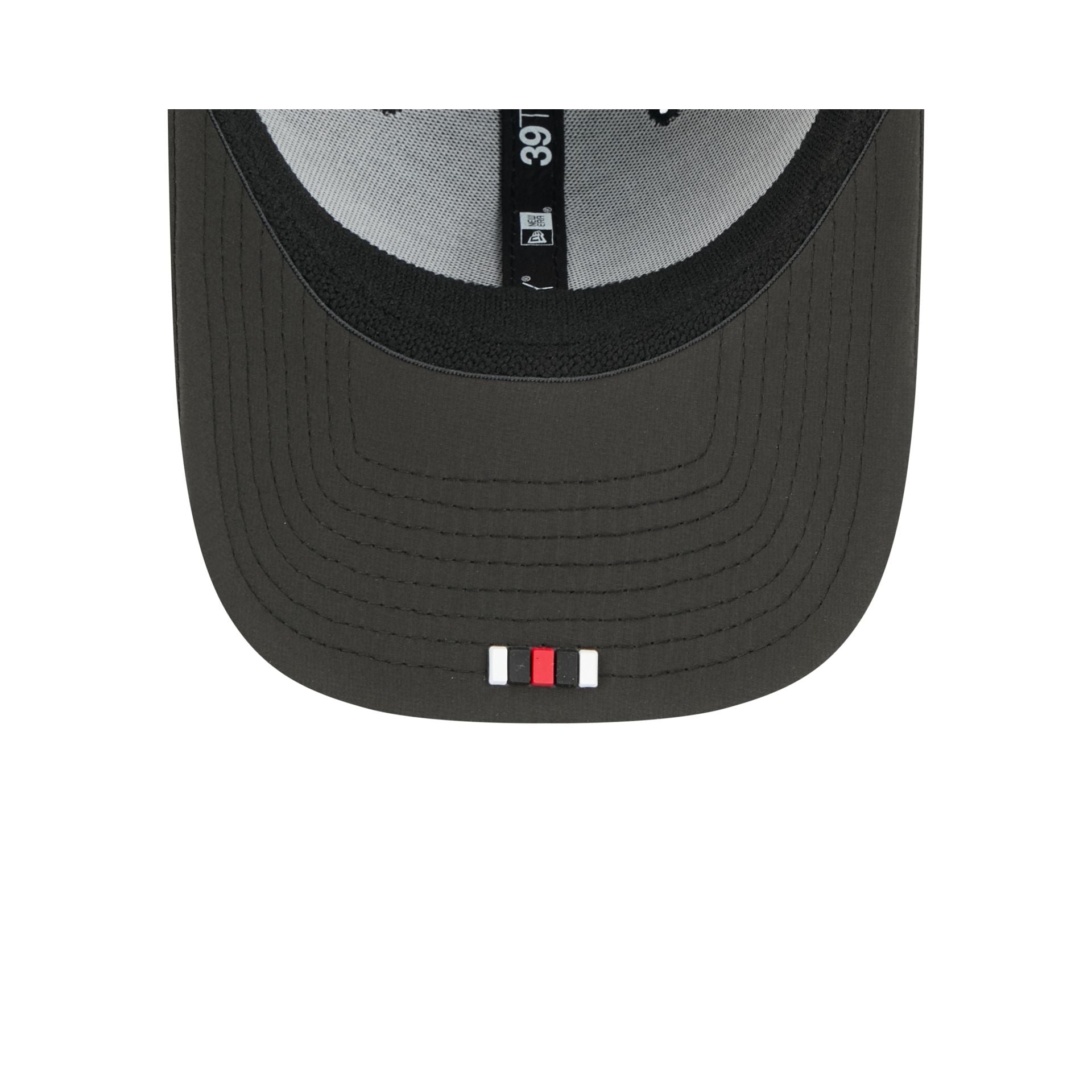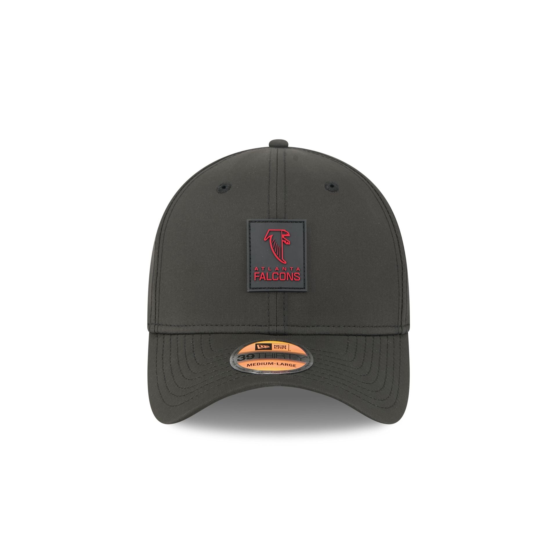 The Atlanta Falcons 2025 Sideline Hot Weather Historic 39THIRTY Stretch Fit features a sewn-down silicone Falcons historic logo patch at the front panels with the Official NFL Shield logo at the rear. The cap has a water-repellent quill tech fabrication throughout, with an insulated crown and quick-dry cushioned sweatband. The undervisor is accented with a silicone transfer in the team’s colors.