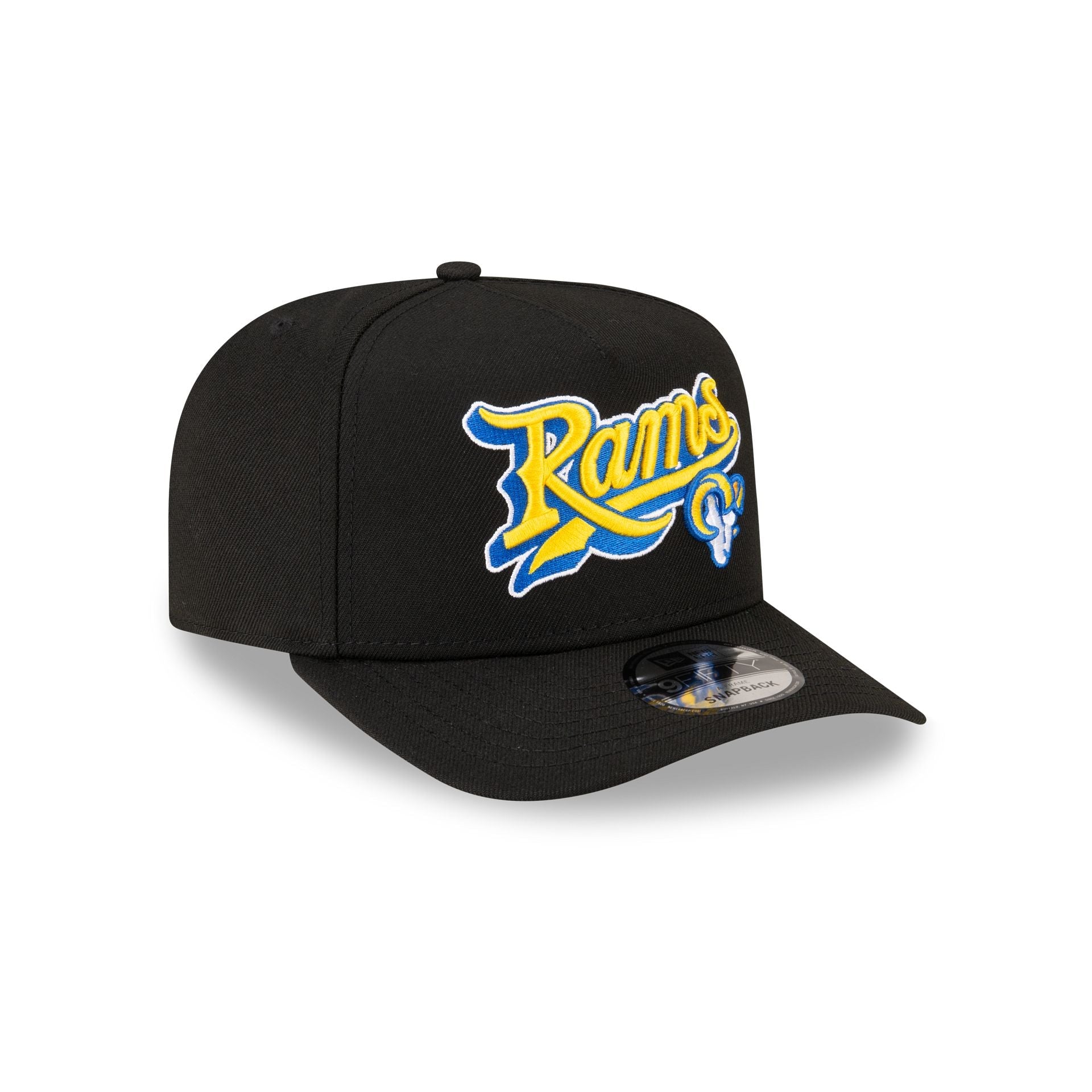 Born x Raised x Los Angeles Rams Script Black 9FIFTY A-Frame Snapback Hat