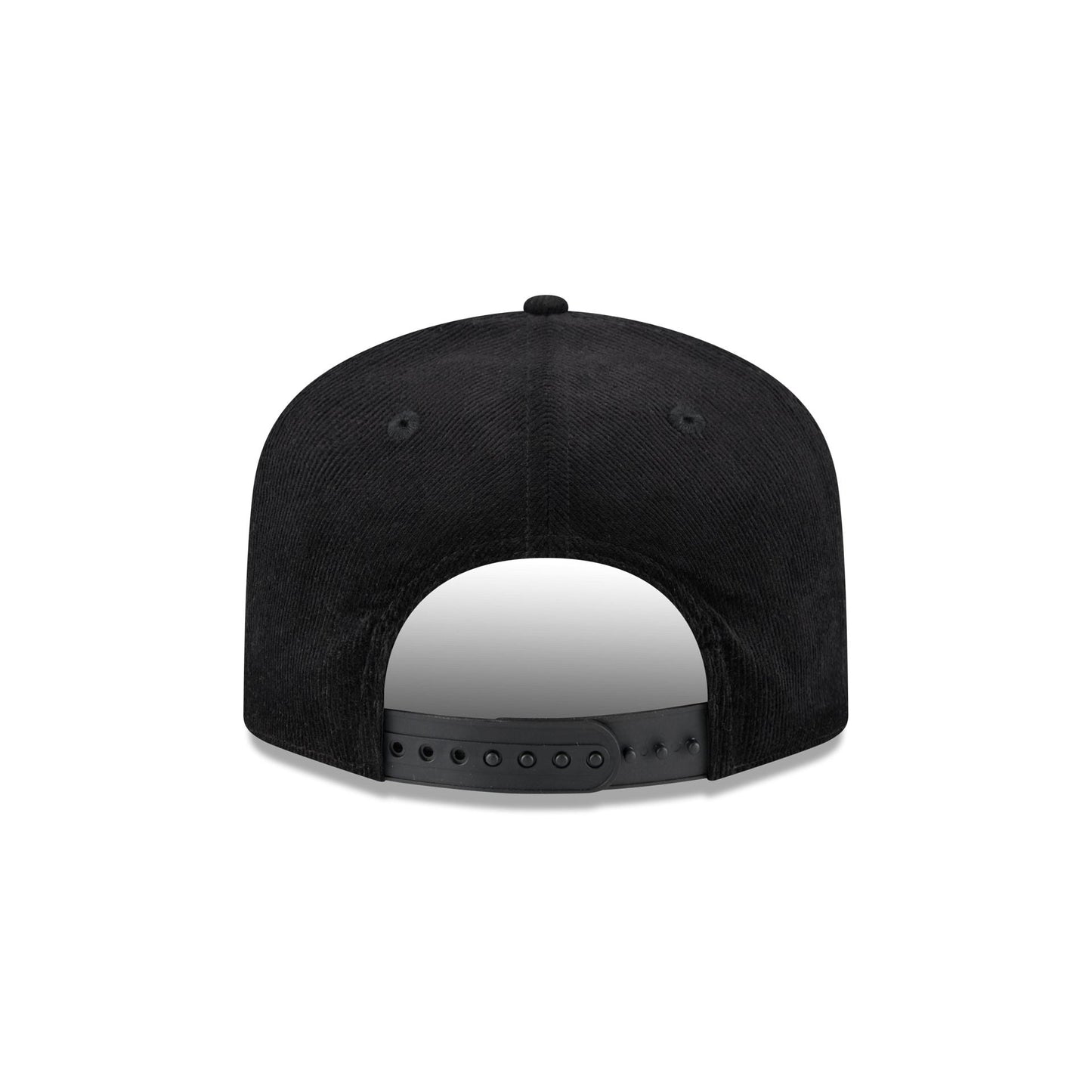 The California Golden Seals Nostalgic Black Corduroy 19TWENTY Adjustable Cap features an embroidered Seals Vintage logo at the front panel with a snapback closure at the rear and a gray undervisor.