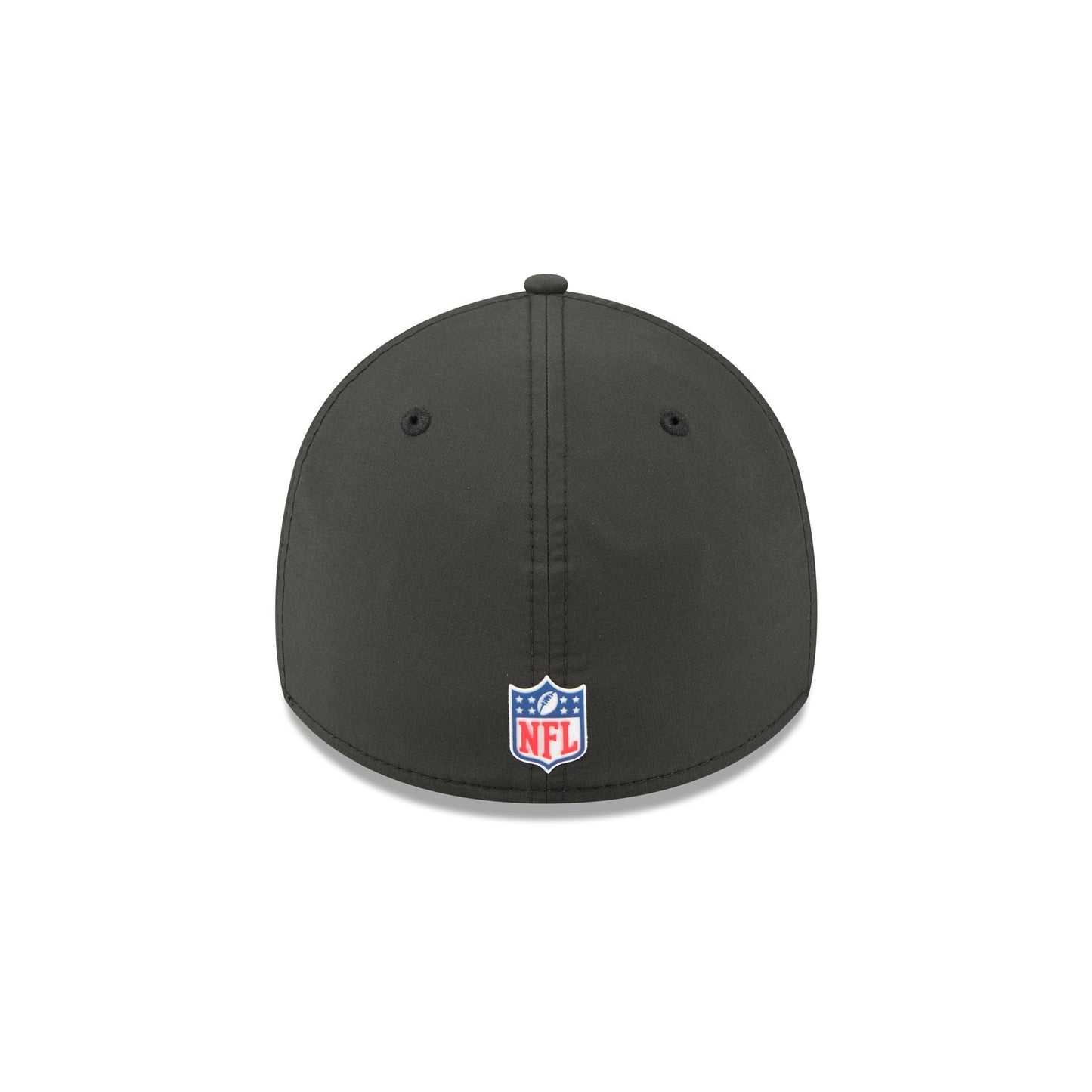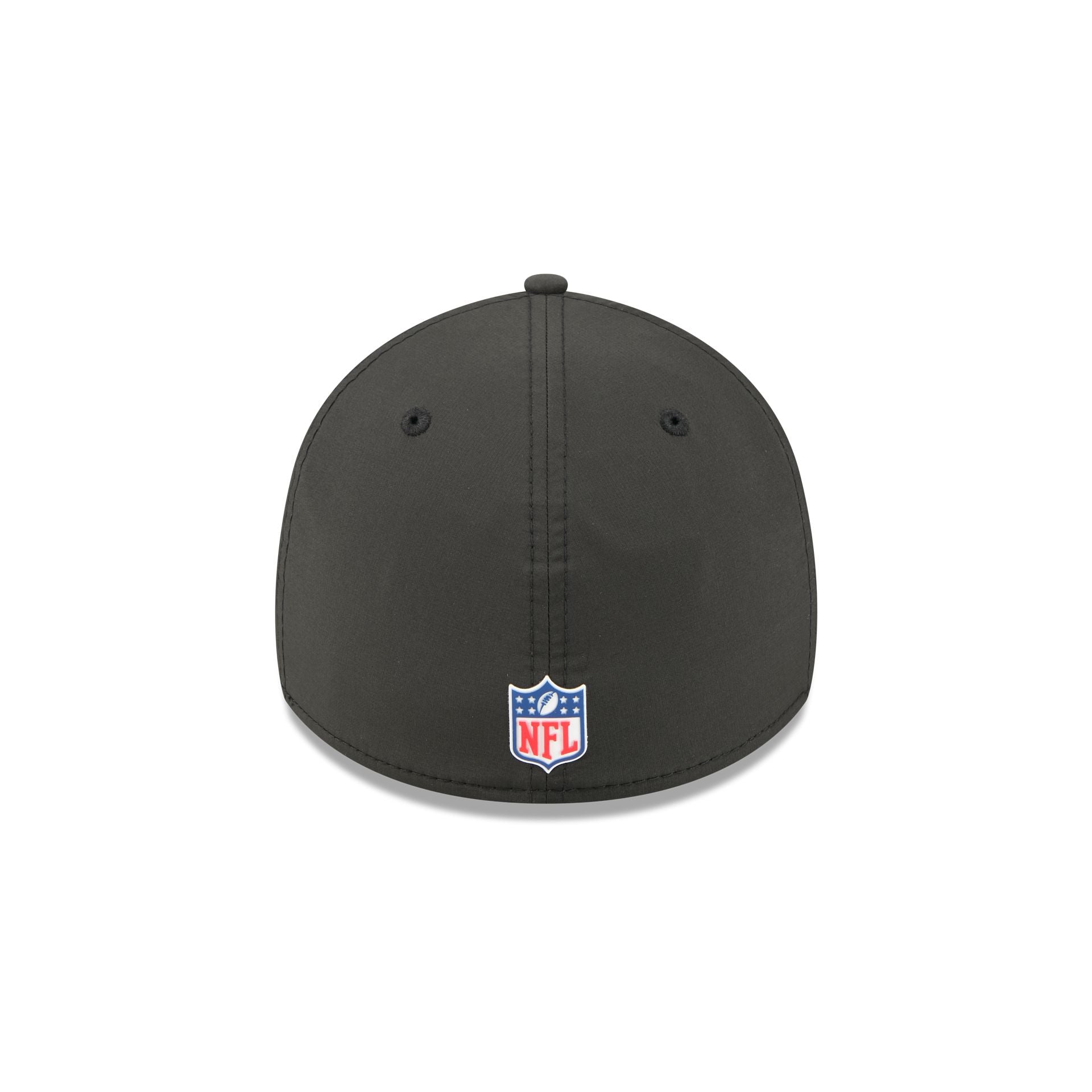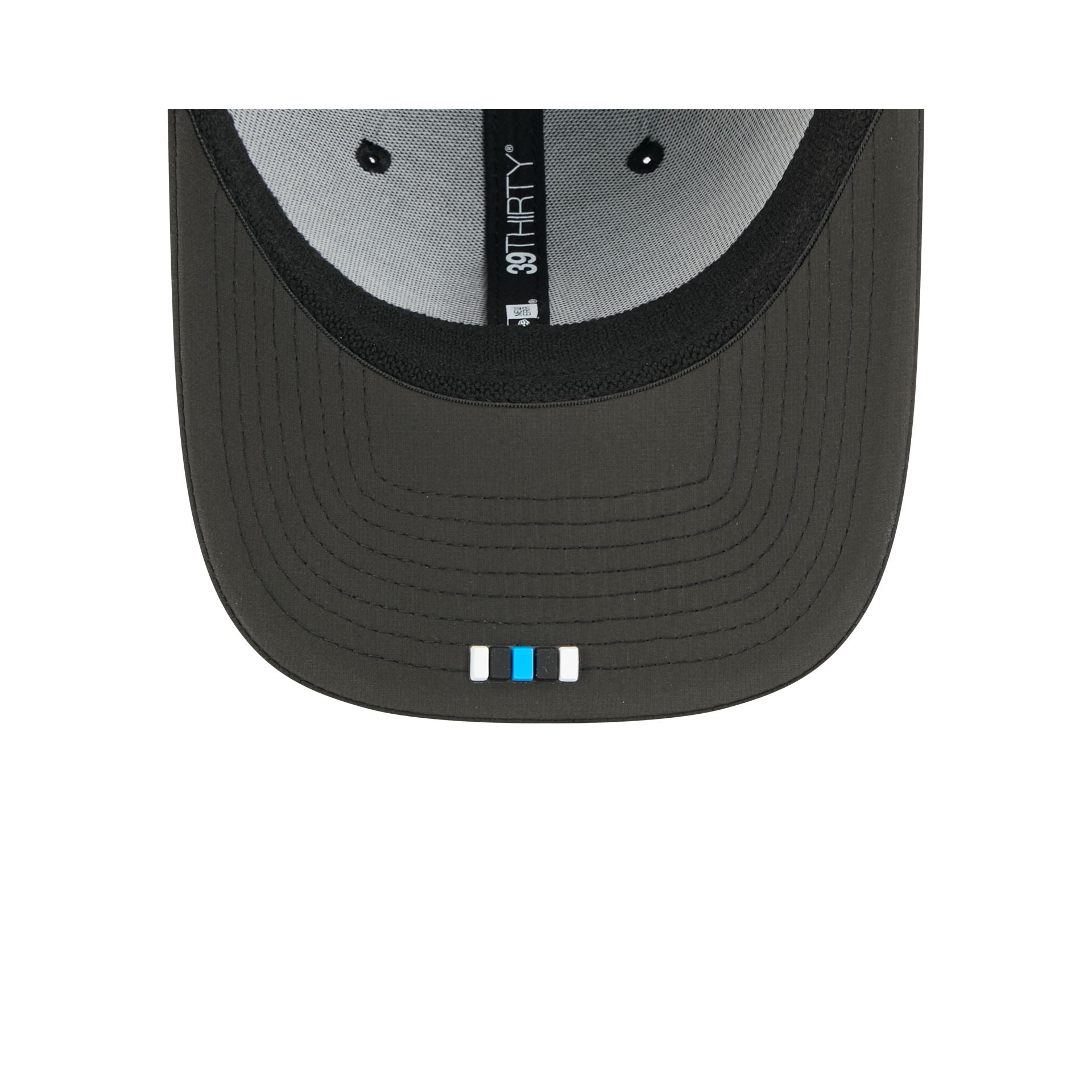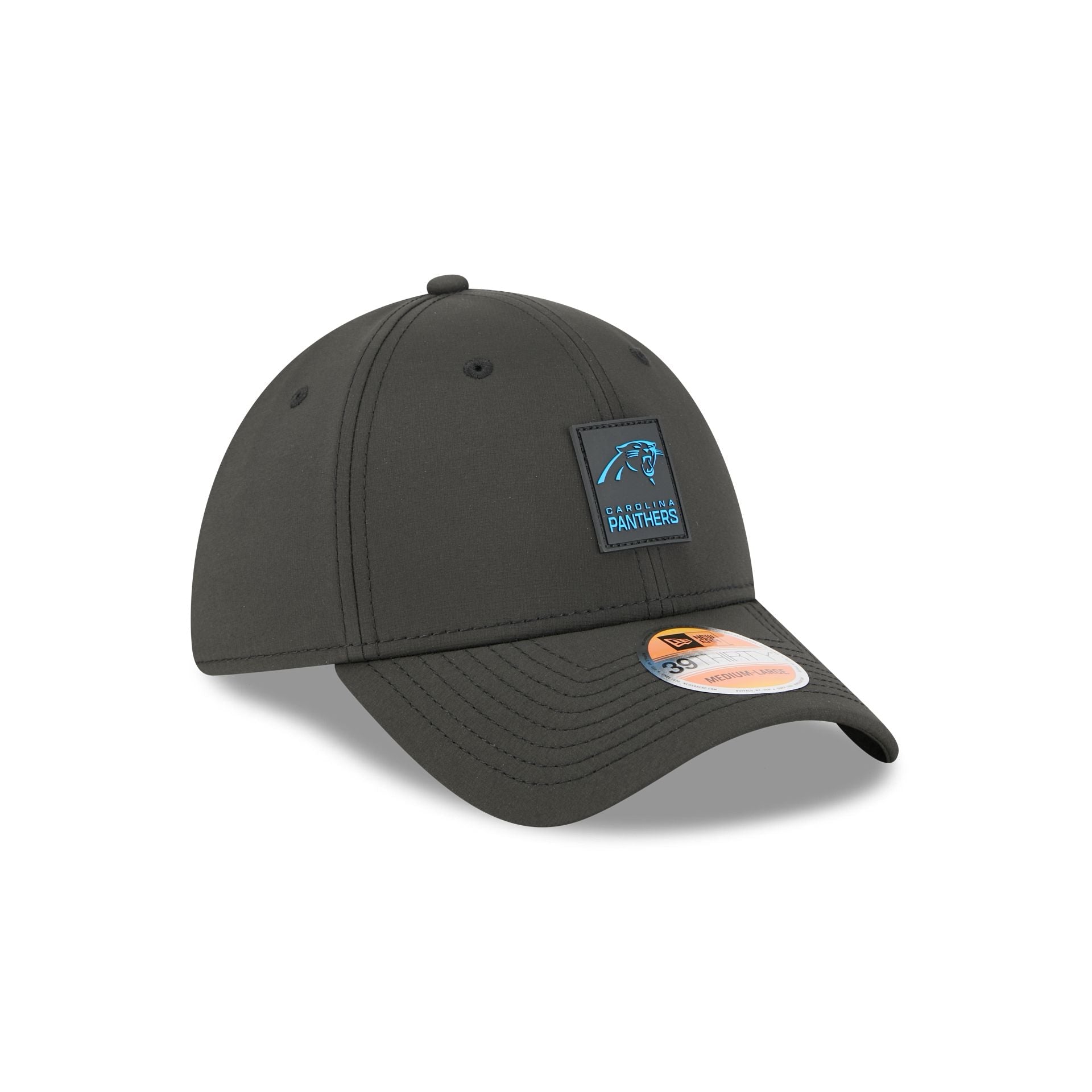 The Carolina Panthers 2025 Sideline Hot Weather Black 39THIRTY Stretch Fit features a sewn-down silicone Panthers logo patch at the front panels with the Official NFL Shield logo at the rear. The cap has a water-repellent quill tech fabrication throughout, with an insulated crown and quick-dry cushioned sweatband. The undervisor is accented with a silicone transfer in the team’s colors.