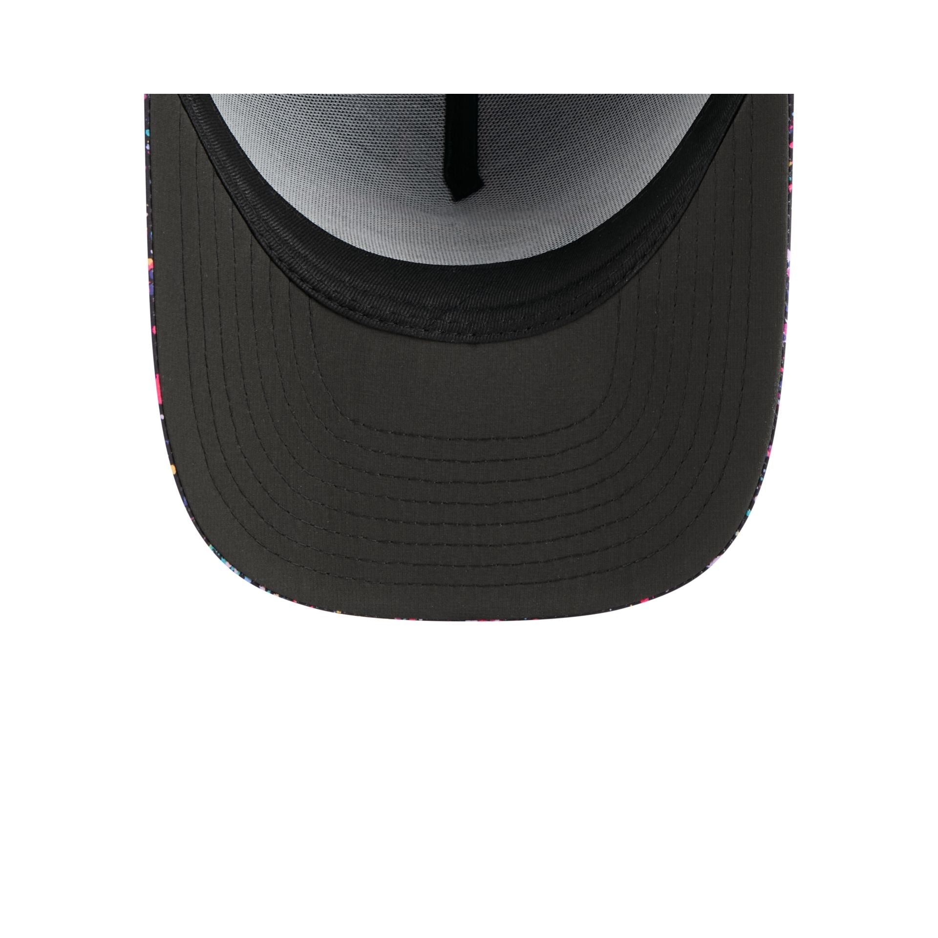 The Chicago Bears 2025 Crucial Catch 9FIFTY A-Frame Snapback features an embroidered Bears logo at the front paint splatter panels with a woven NFL Shield tag above a snapback closure and a GSH logo at the rear. Additional details include a Crucial Catch Intercept Cancer patch at the right-wear side and a black undervisor.