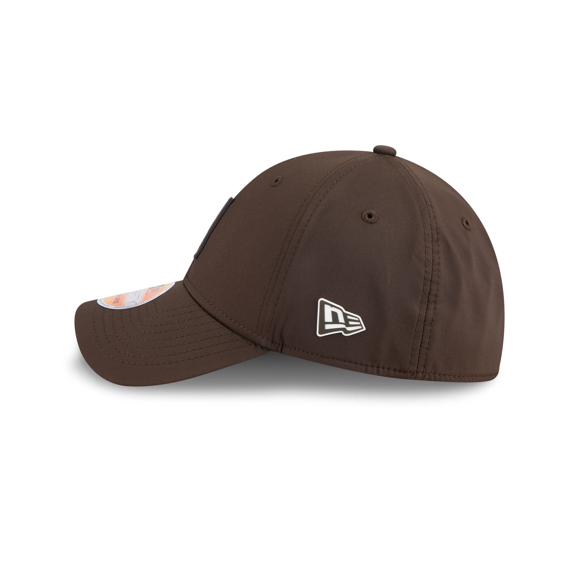 The Cleveland Browns 2025 Sideline Hot Weather 39THIRTY Stretch Fit Cap features a sewn-down silicone Browns logo patch at the front panels with the Official NFL Shield logo at the rear. The cap has a water-repellent quill tech fabrication throughout, with an insulated crown and quick-dry cushioned sweatband. The undervisor is accented with a silicone transfer in the team’s colors.