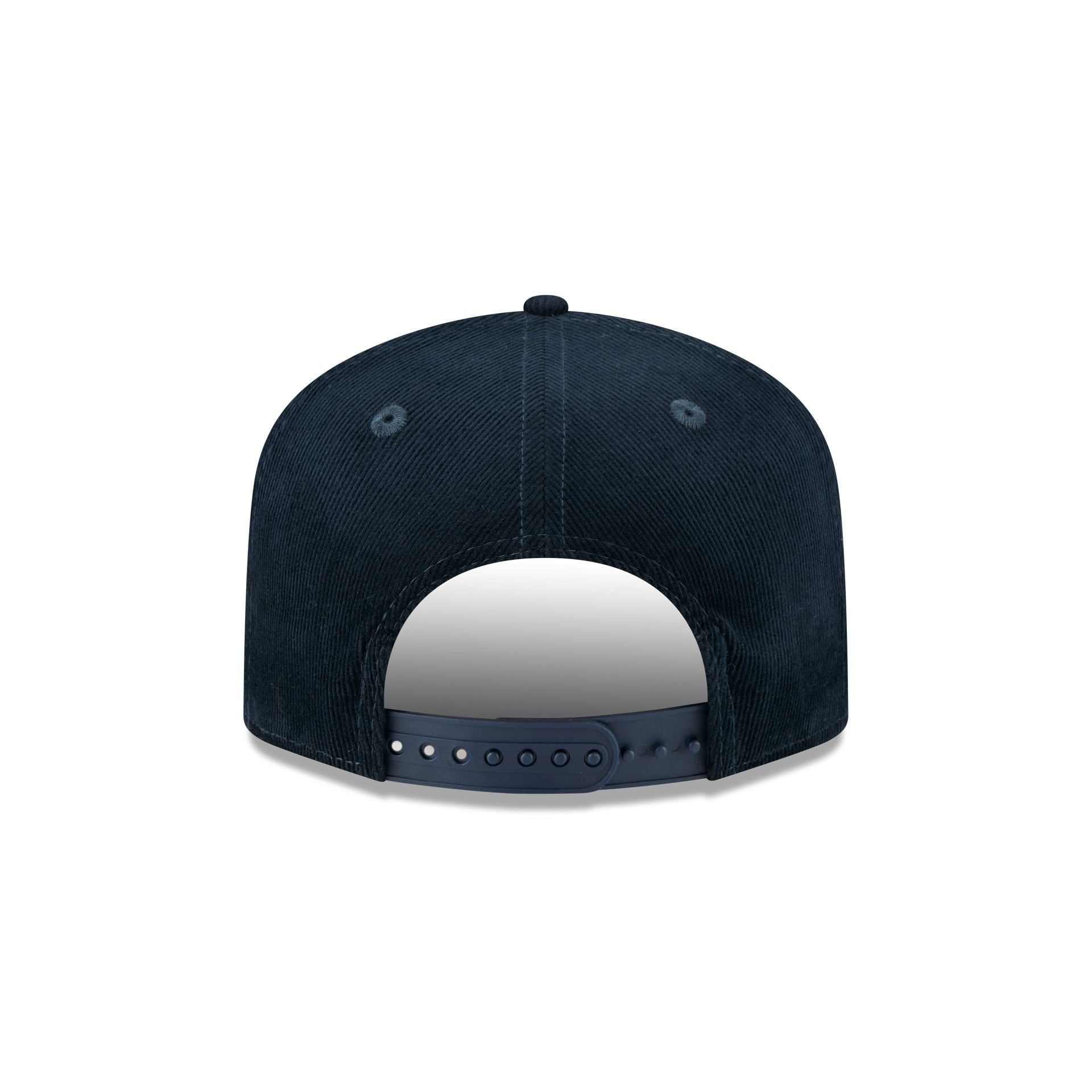 The Denver Broncos Nostalgic Navy Corduroy 19TWENTY Adjustable Cap features an embroidered Broncos Historic logo at the front panel with a snapback closure at the rear and a gray undervisor.