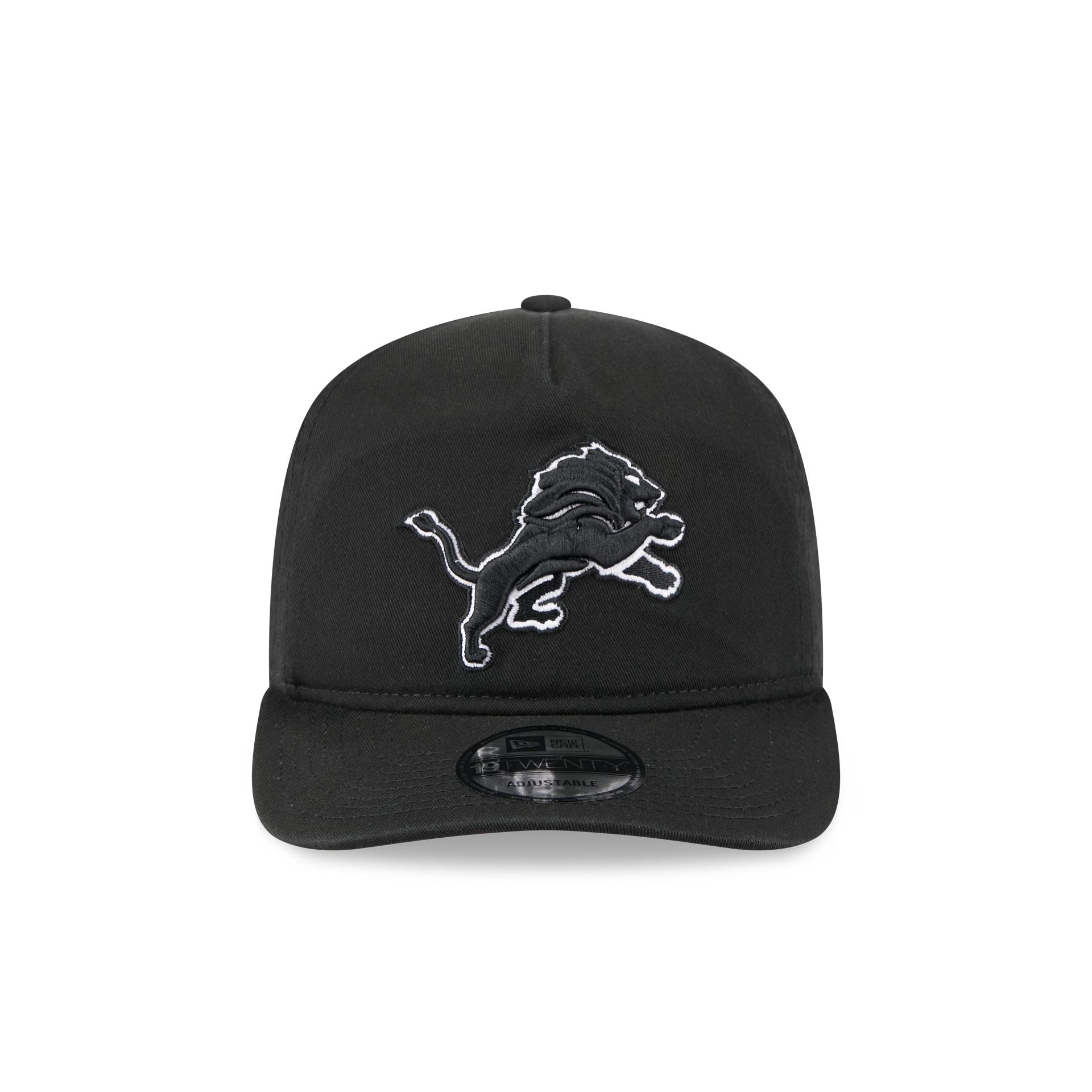 The Detroit Lions Black and White 19TWENTY Snapback features an embroidered Lions logo at the front with a snapback closure at the rear and a gray undervisor.