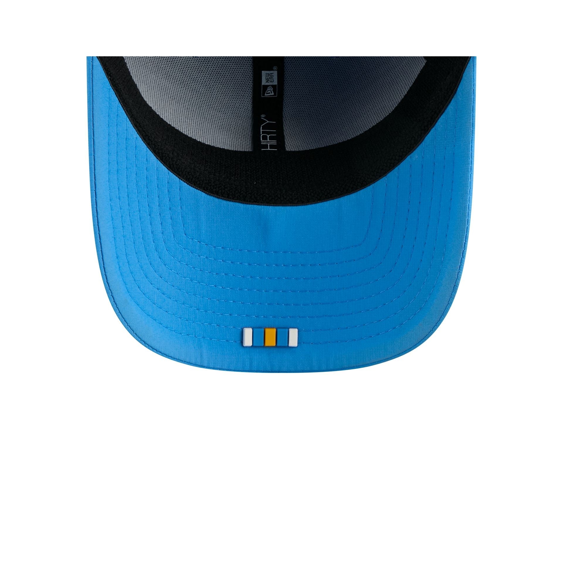 The Los Angeles Chargers 2025 Sideline Hot Weather Historic 39THIRTY Stretch Fit features a sewn-down silicone Chargers historic logo patch at the front panels with the Official NFL Shield logo at the rear. The cap has a water-repellent quill tech fabrication throughout, with an insulated crown and quick-dry cushioned sweatband. The undervisor is accented with a silicone transfer in the team’s colors.