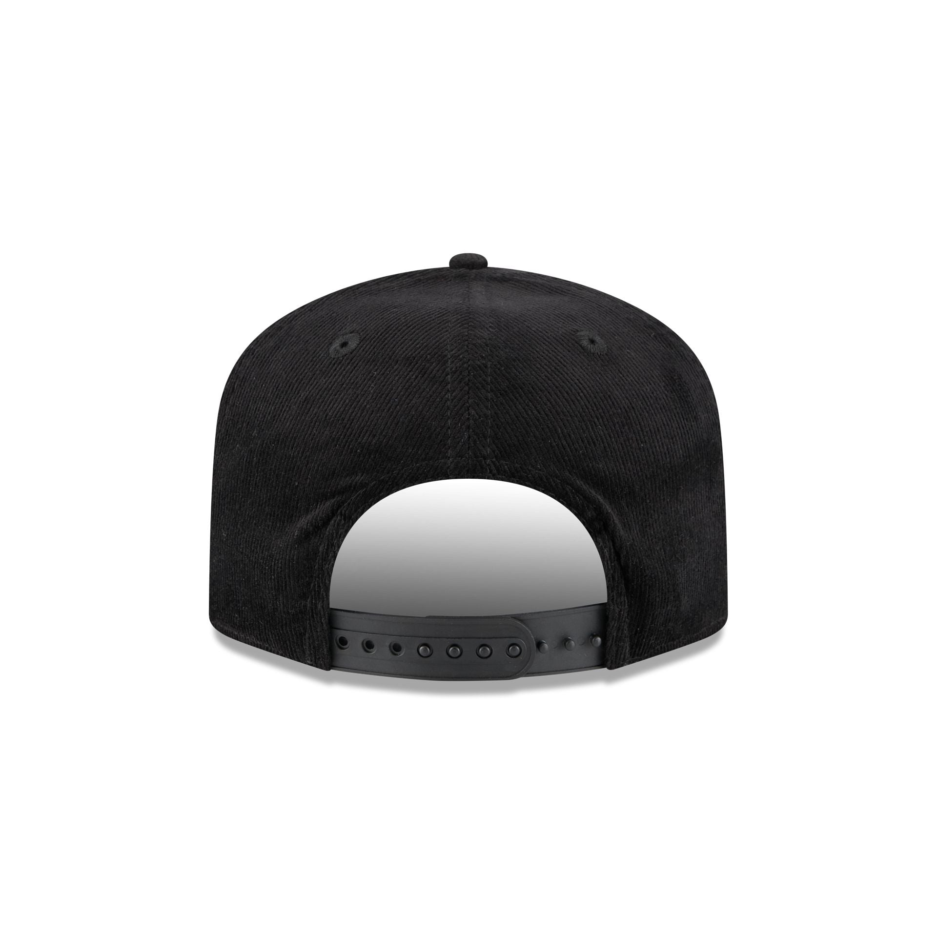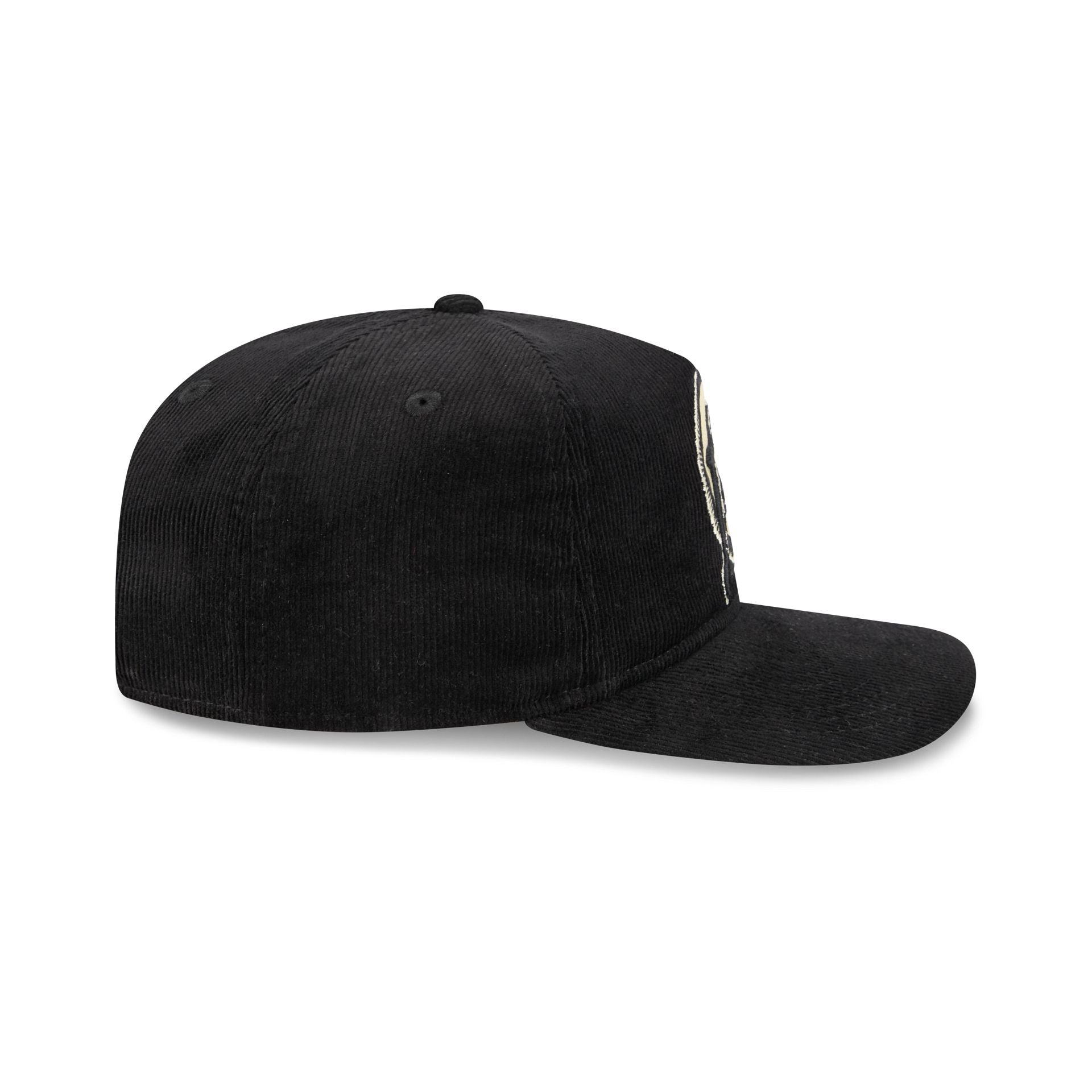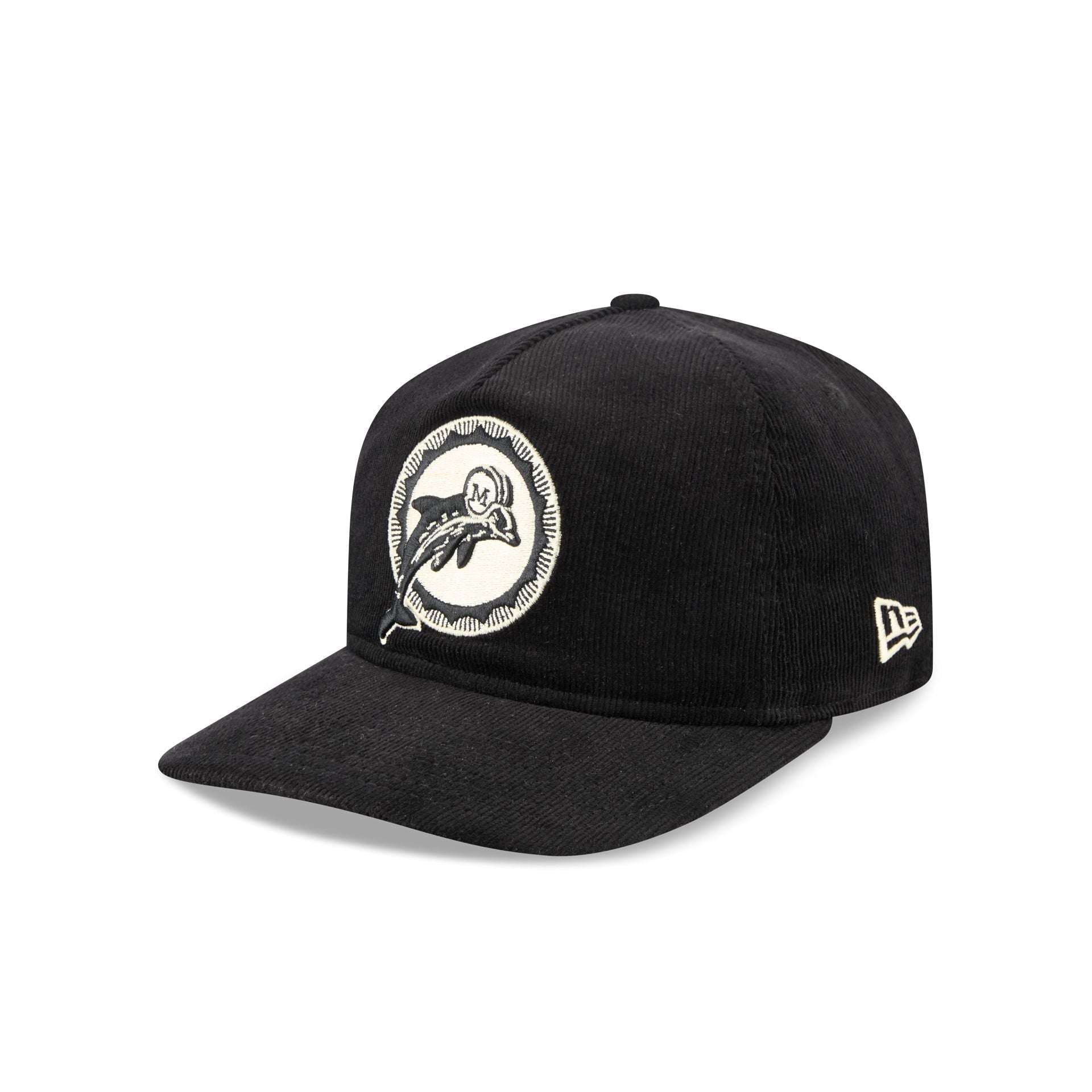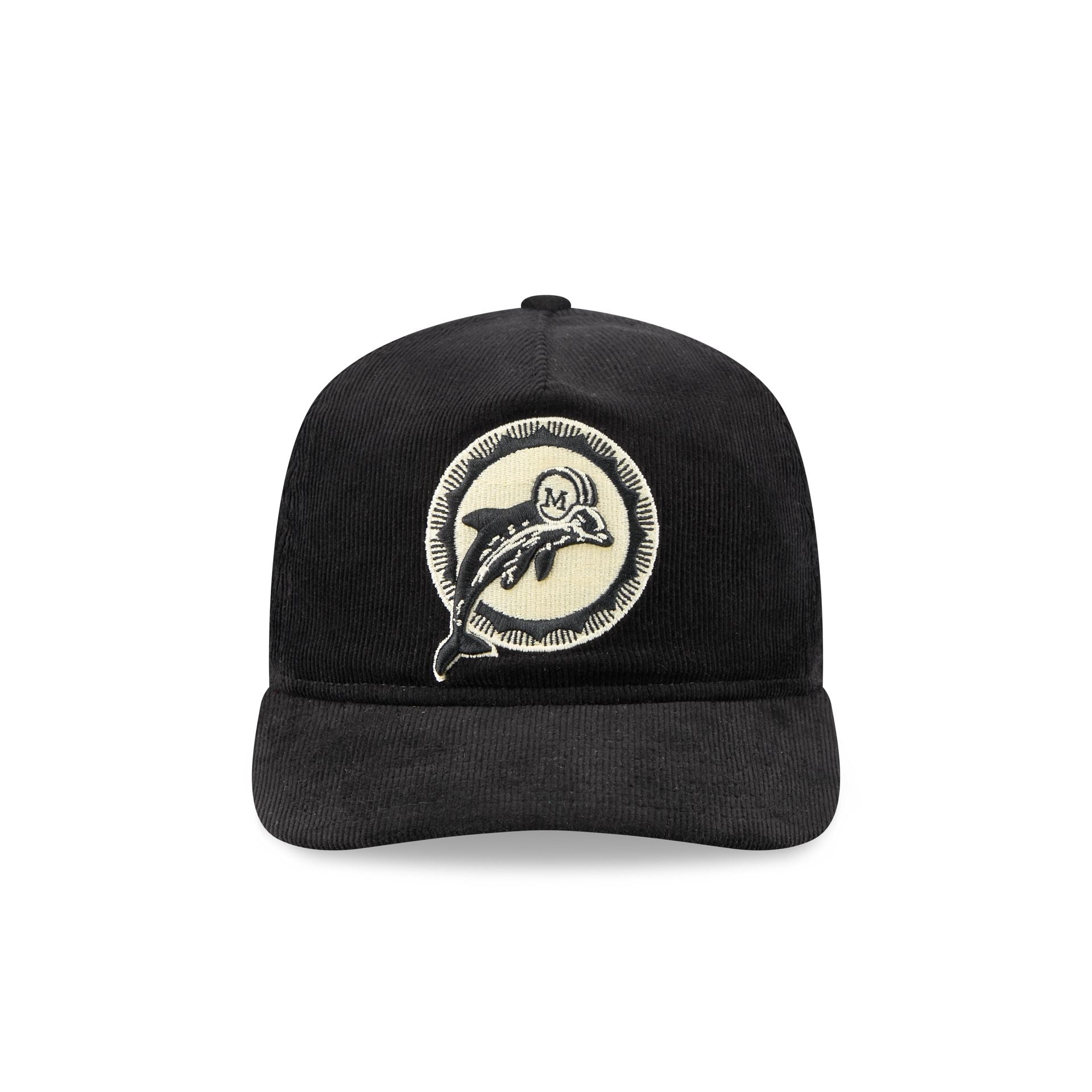 The Miami Dolphins Nostalgic Black Corduroy 19TWENTY Adjustable Cap features an embroidered Dolphins Historic logo at the front panel with a snapback closure at the rear and a gray undervisor.