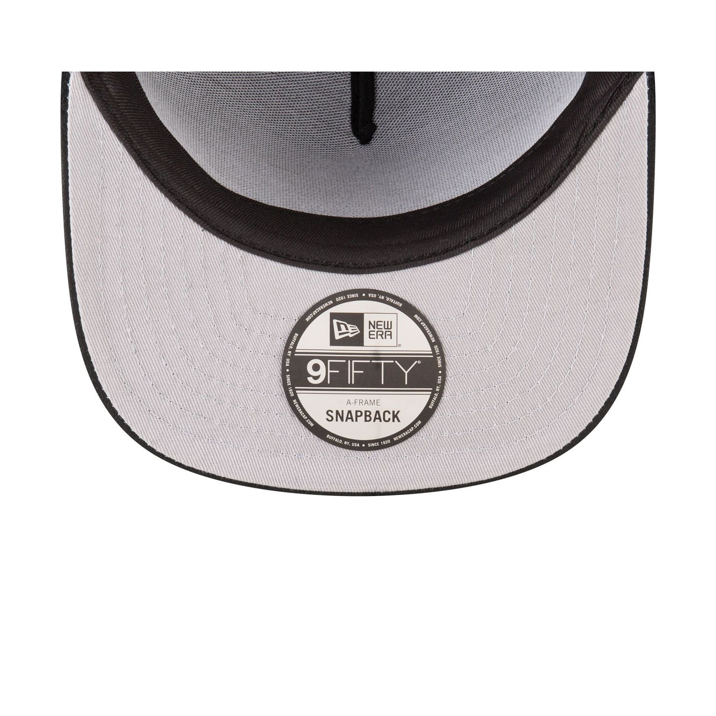 The Miami Marlins Wool Letterman 9FIFTY A-Frame Snapback features an embroidered loop Marlins Cooperstown logo at the front panels with a team script and establishment date at the right-wear side. Additional details include a wool fabrication throughout, a snapback closure at the rear, and a gray undervisor.