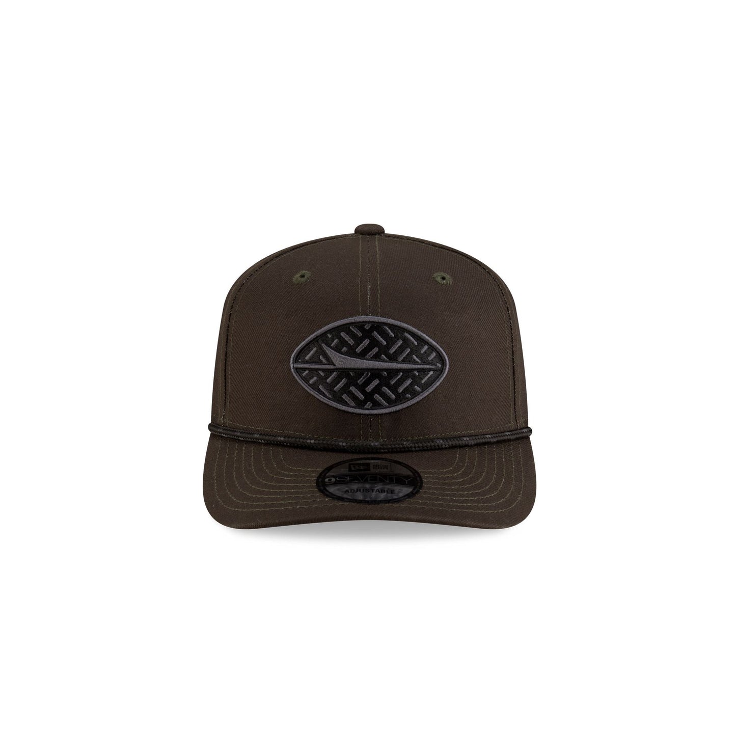 Inspired by their original team name, the Gotham City Football Club, textures pull in the team's roots. The New York Jets 2025 NFL Rivalries Kids 9SEVENTY Stretch-Snap features an embroidered Jets Rivalries logo at the front panels with a rope at the visor. Additional details include a team patch at the right-wear side and the NFL Shield logo above an adjustable stretch-snap closure at the rear.
