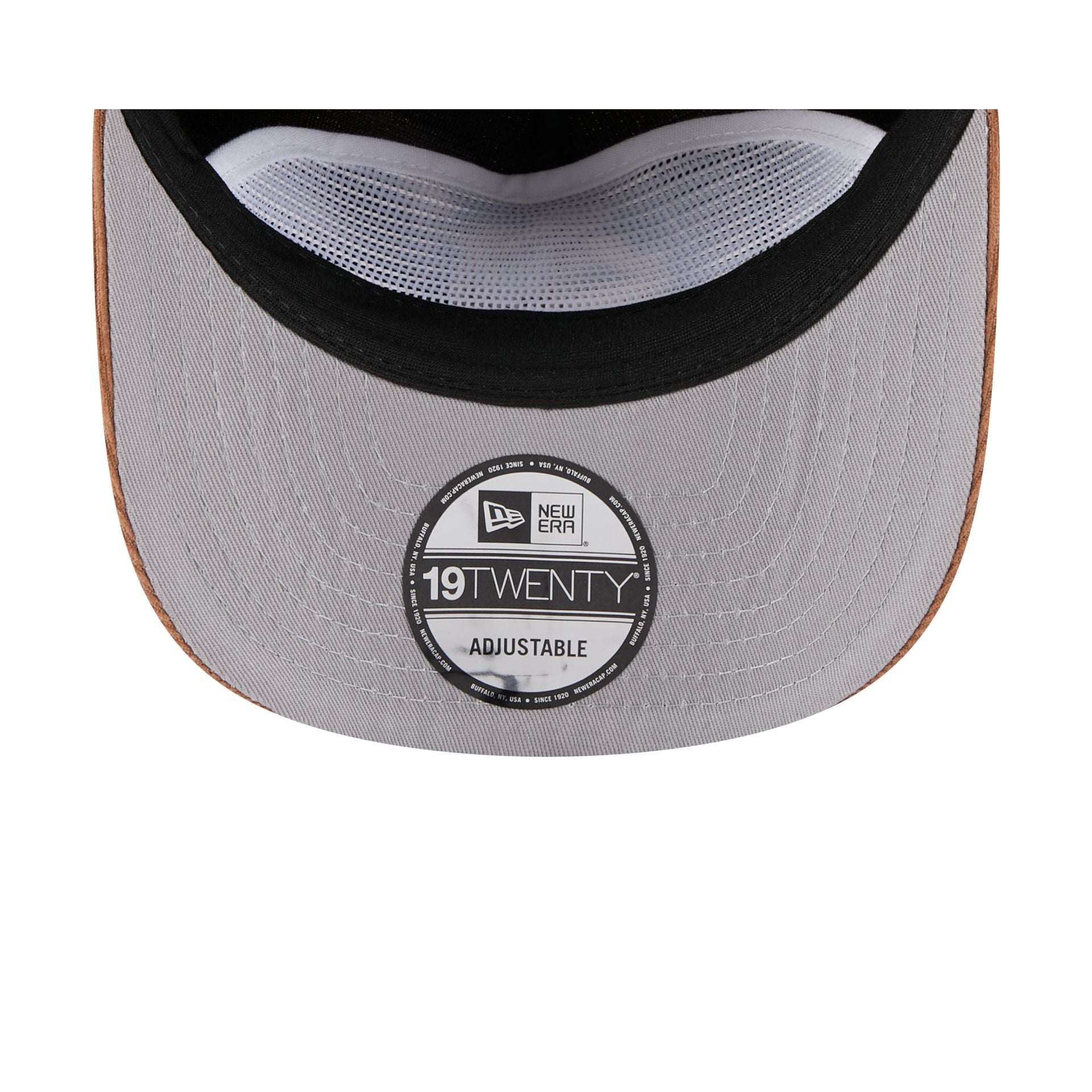 The Pittsburgh Steelers Nostalgic Brown Corduroy 19TWENTY Adjustable Cap features an embroidered Steelers Historic logo at the front panel with a snapback closure at the rear and a gray undervisor.