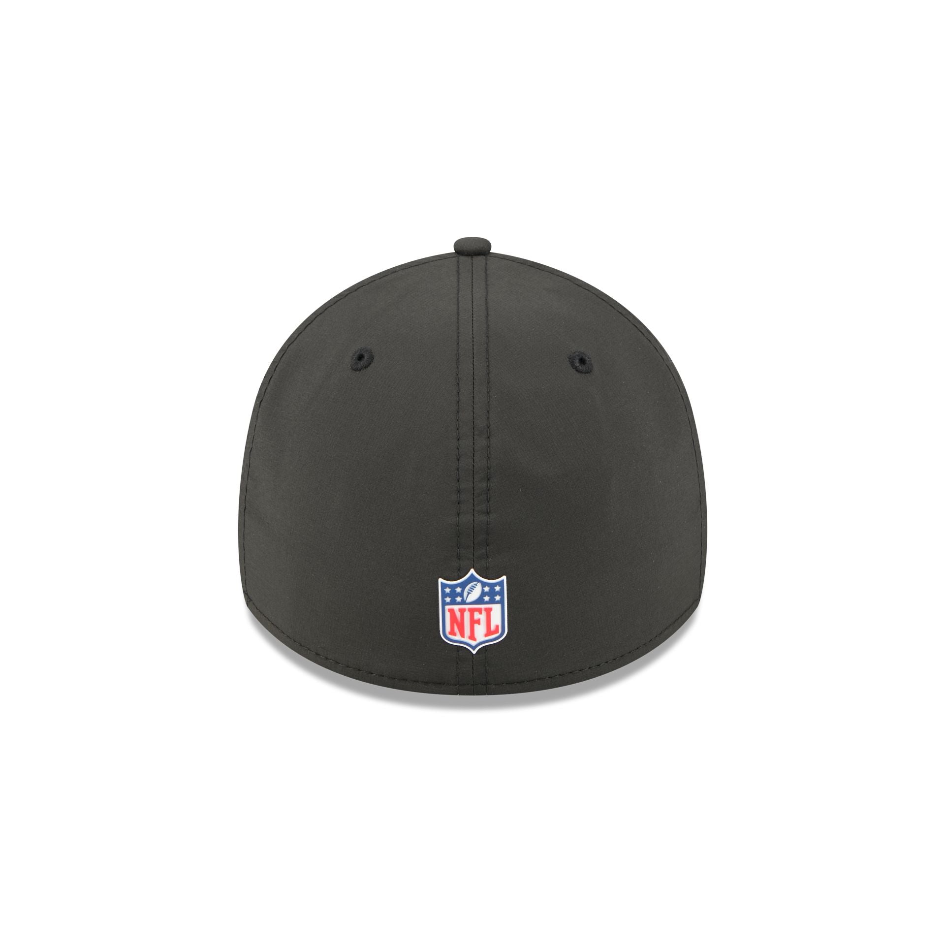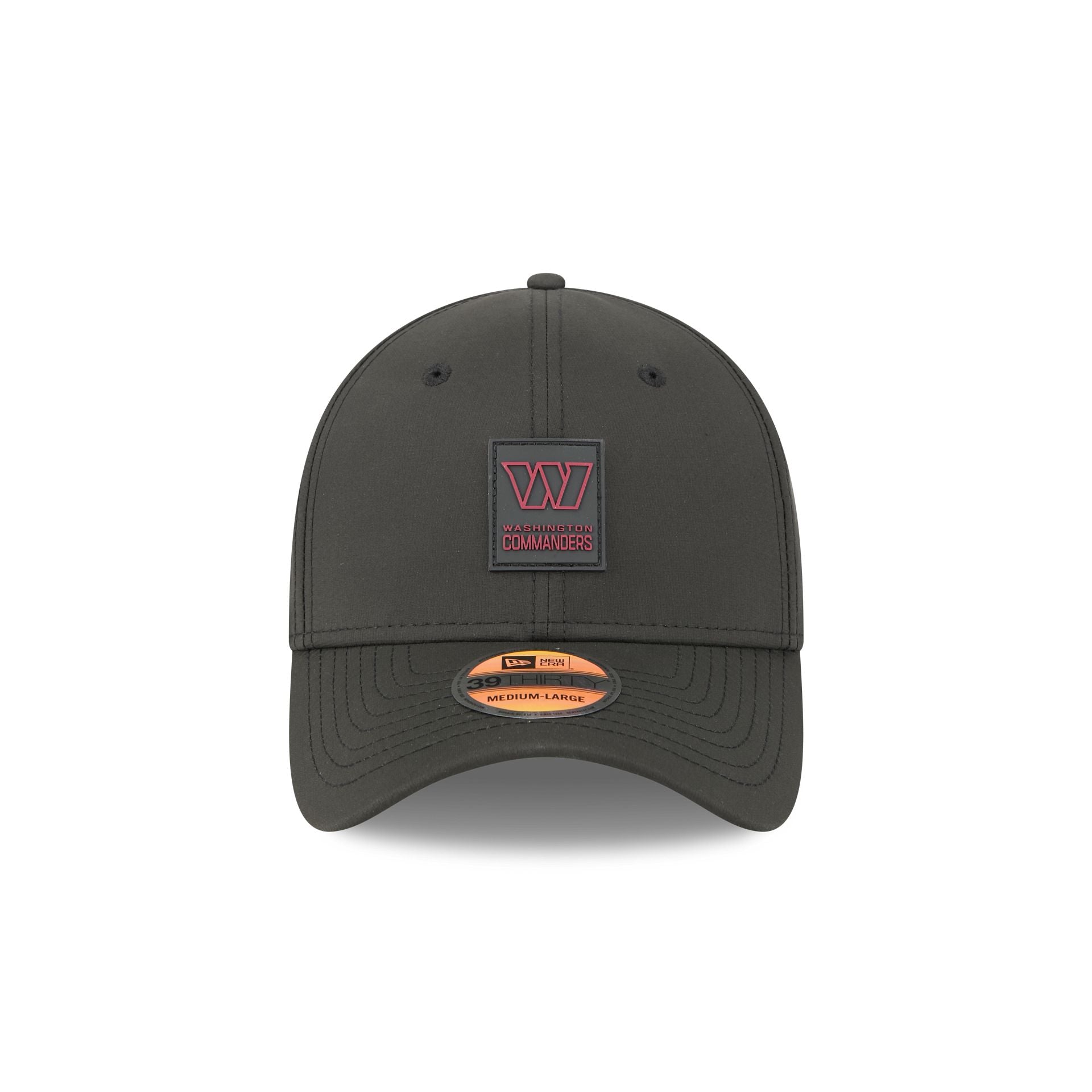 The Washington Commanders 2025 Sideline Hot Weather Black 39THIRTY Stretch Fit features a sewn-down silicone Commanders logo patch at the front panels with the Official NFL Shield logo at the rear. The cap has a water-repellent quill tech fabrication throughout, with an insulated crown and quick-dry cushioned sweatband. The undervisor is accented with a silicone transfer in the team’s colors.